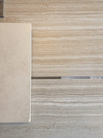 When we were at Designs in Marble Tile and Granite Showroom, we walked around first to get an idea of what each of us liked and then dug right in. We went room by room of the house with Brenda as she took all the notes and would pull tiles for us and grout samples to try with each. Who knew there were even different types of grout to use that would be have very little maintenance!? Well there is and of course we picked it.