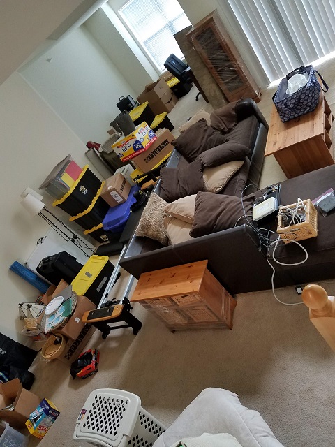 We moved out of our Cliffside Ct home on June 25th and moved into an apartment. Now mind you, in the past three months we had been moving items into 2, yes 2 storage units. Having 15 years of stuff, even with 2 big purges, we had a lot to move out and keep in storage while our dream home was being built. Not to mention we were downsizing quite a bit by going into and apartment. I highly recommend doing at least 2 purges to make sure you get rid of and donate what you have not used in the last 2 years. And also think about if you want to get new items (like Christmas items and furniture) for the new house. We set up one storage unit of items that we knew we would not need at the apartment and wouldn’t need until we moved into the new house. The other storage unit was for over flow of the other unit plus items we might need or use at the apartment AND a pile of items that would be going to a rummage sale in July.