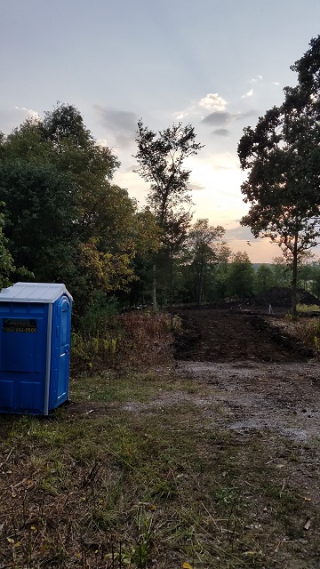 When we got back we hit the ground running with work and getting things ready at the land for ground breaking. We had to contact Bark River Tree Service again as we needed a path for utilities and the sanitary system along with widening the path of the driveway and removing a few trees that were in the path of the drive. But even before that, the black, silt fence was put up. For some reason, that was very exciting to see along with the outhouse being set up. To us, that meant that things were getting real.
