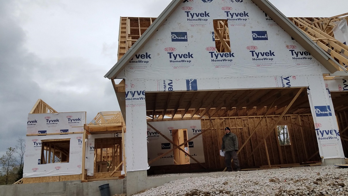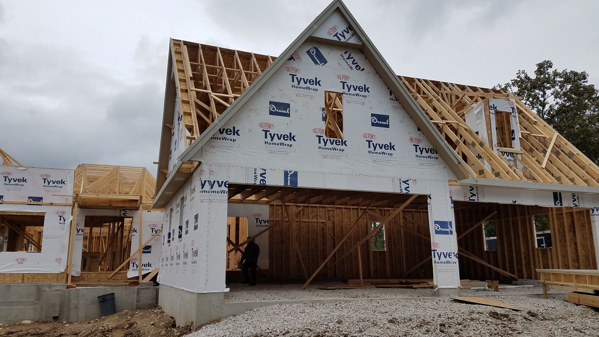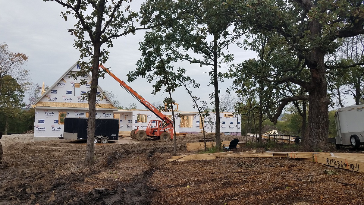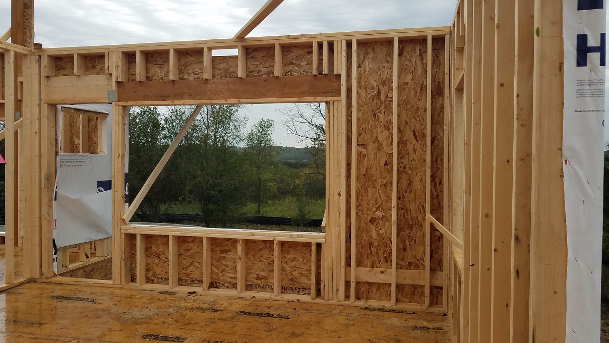 Not much to really say at this point with more walls going up and trusses set into place, except WOW! So much happens in one weeks time. They had one full week of working between raindrops and then the next week they lucked out and had lots of sun. Every time we stop by the house and see the progress we start imagining more and more of how the house will look. Once again, Craig from James Craig Builders did say that the house will go through phases of looking small then big then small and so on. At this point, things look a little small until you start measuring things out. For instance, our Master Bedroom looked tiny. We were really worried until we went back with a tape measure and measured out our King size bed. All is well. So don’t panic during this phase. Take it as it comes but this a good time to really start looking around and making notes about things you notice that you aren’t quite sure about or notes on where you might be putting things. We noticed a window that was in a place for no rhyme or reason. We asked to have it removed from the plan and all is well. The windows were already ordered but we will keep it for something as we already paid for it.