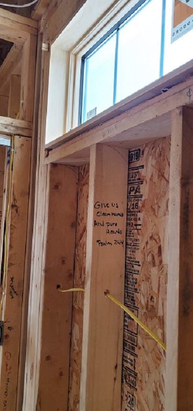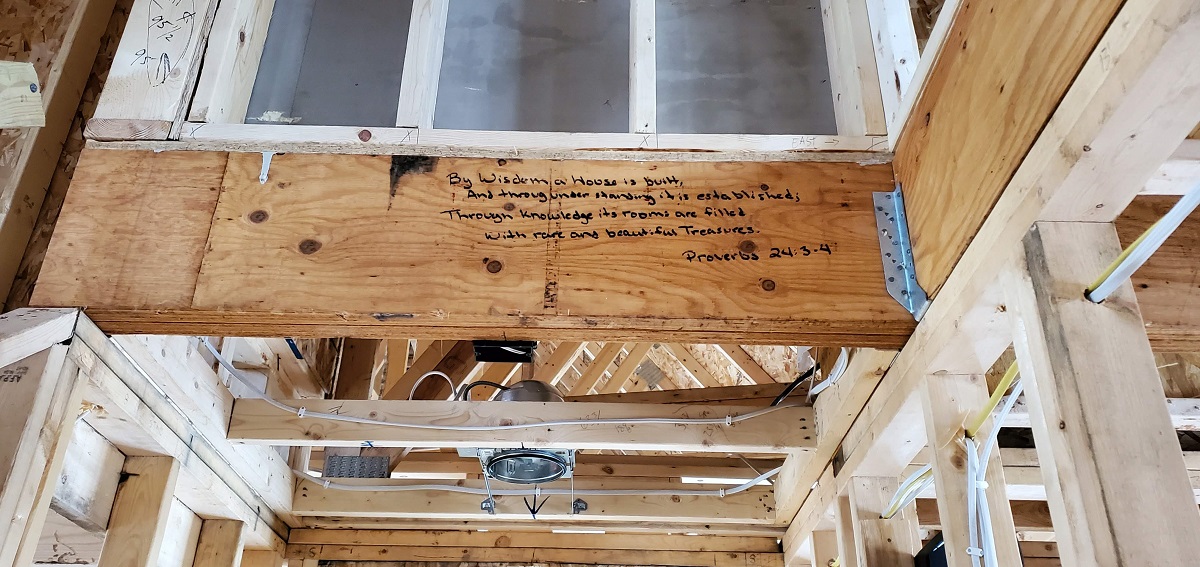 While there, we decided to leave a few blessings behind. Never to be seen again after the drywall goes up later this spring. They will forever be present though and blessing those that visit and live there.