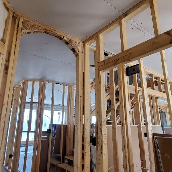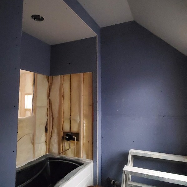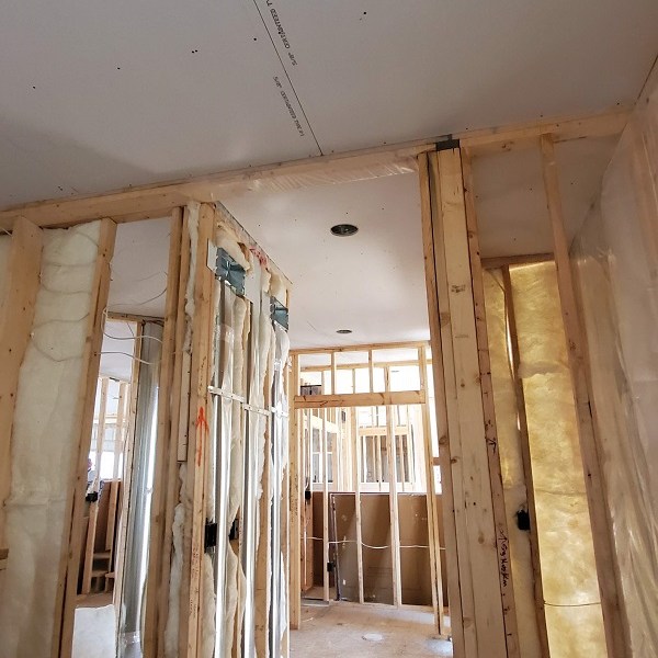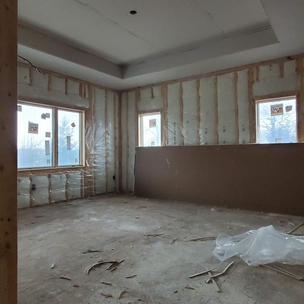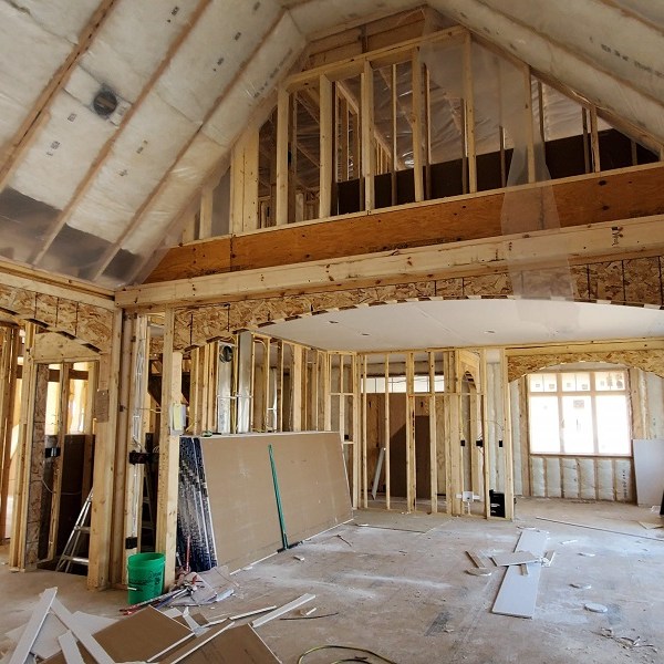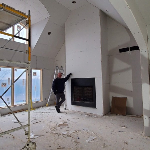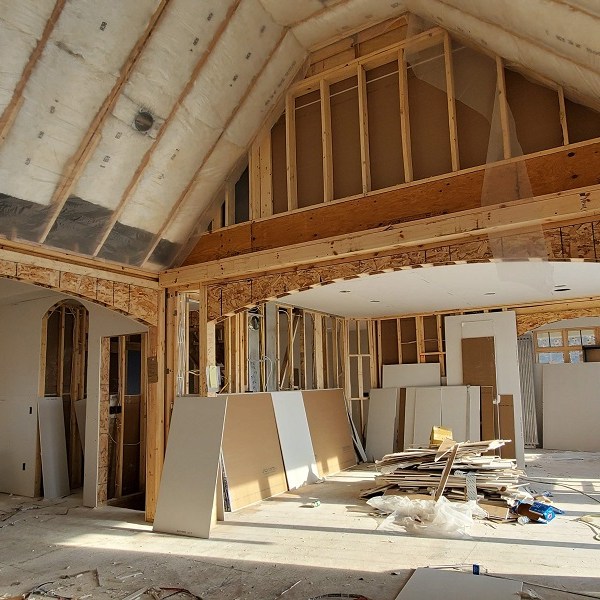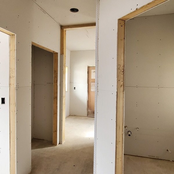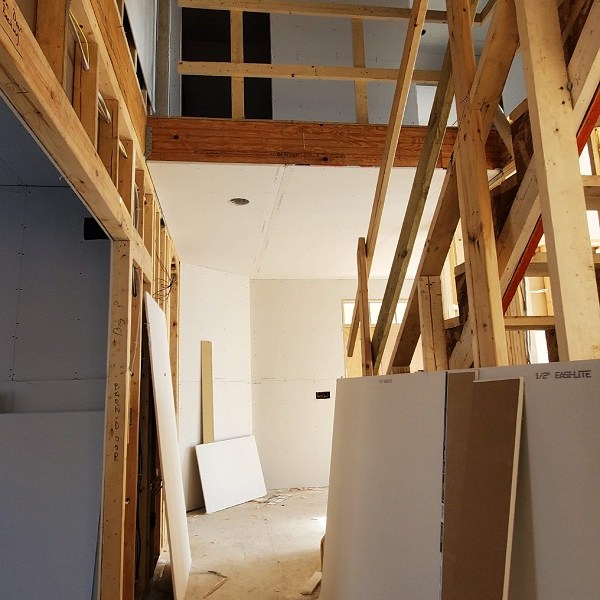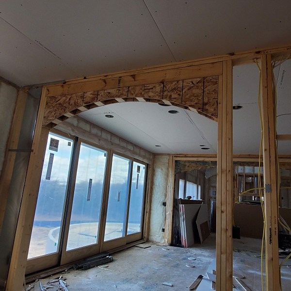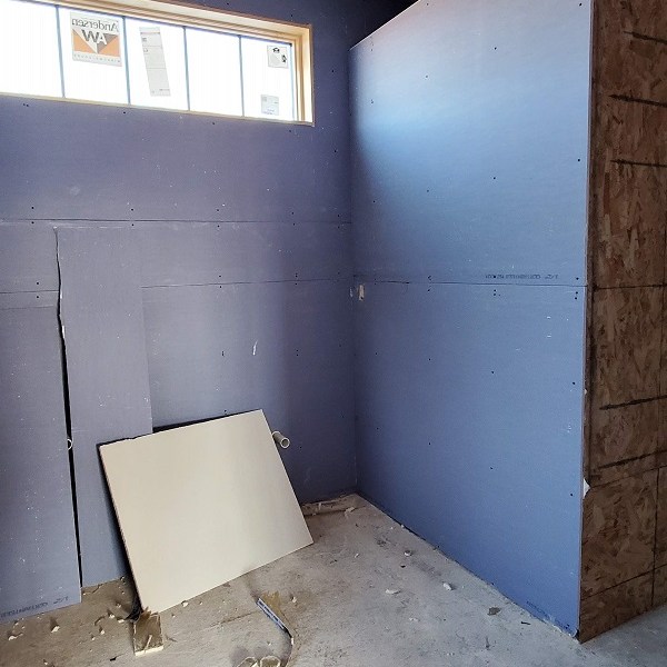 The drywall (Rockers as they call them) was started on April 17, 2020. This is just the first step of the three plus week process to complete the walls for painting. We were amazed by how much drywall was stacked everywhere AND that they had to bring it all in by hand! Crazy!! I didn’t get the name of the company but these guys were super nice and worked fast. Like I have done with the rest of the people working on the house, I apologized. All those steep vaulted ceiling, niches and arches, I’m sure this house is either their worst nightmare or a wonderful challenge. I took pictures during the process so I could record the progress. From our experience, they first did all the ceiling in each room and closet along with a few harder spots. Then they started working on the upstairs and a few of the smaller rooms downstairs. The blue sheet rock is for the bathrooms and dealing with humidity. Then they tackled the large rooms and the living room. They had quite a good system going. As one guy was yelling out numbers in Spanish, another would be cutting pieces, sanding the edge and then handing it to the guy that asked for it. Boom, Boom, Boom!