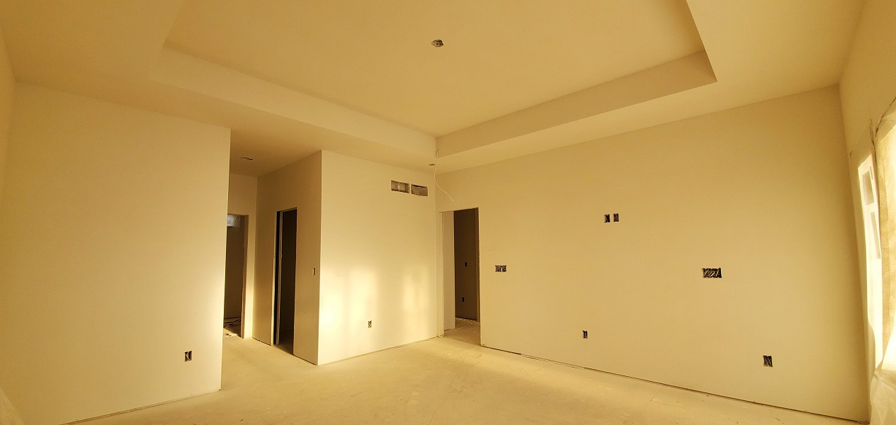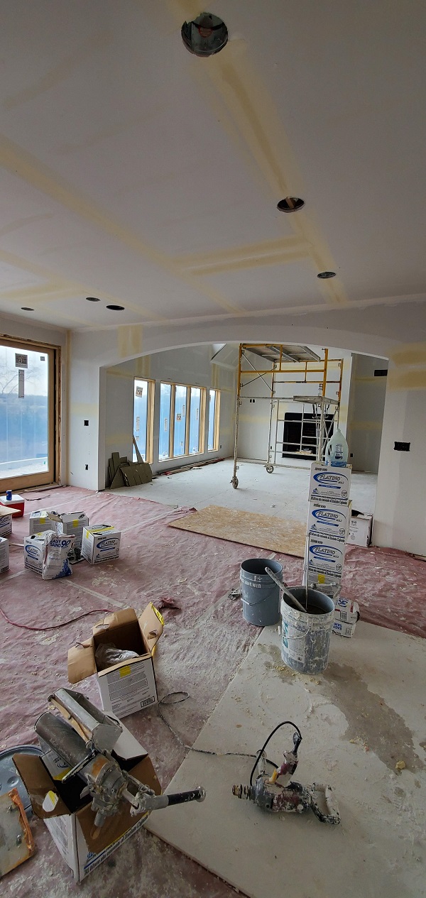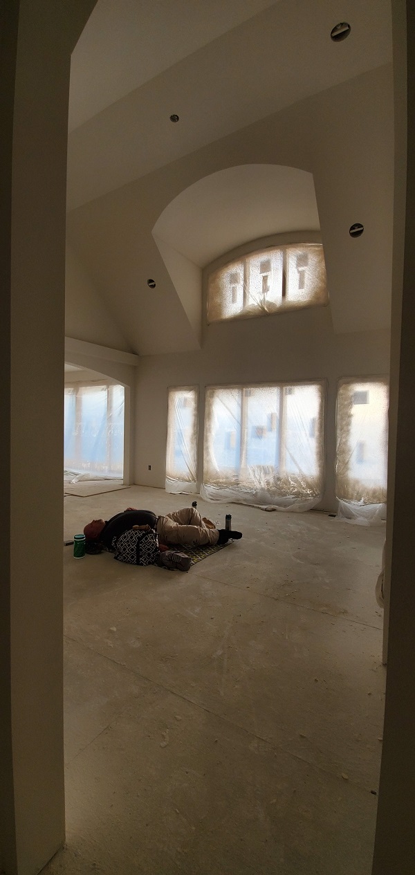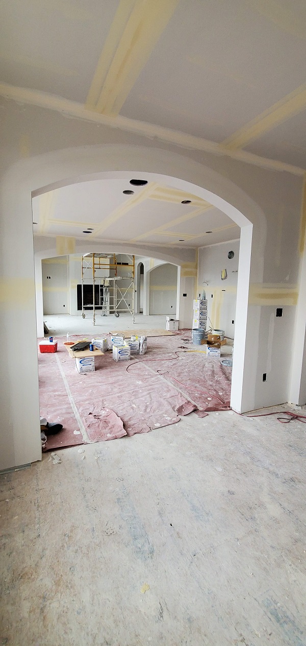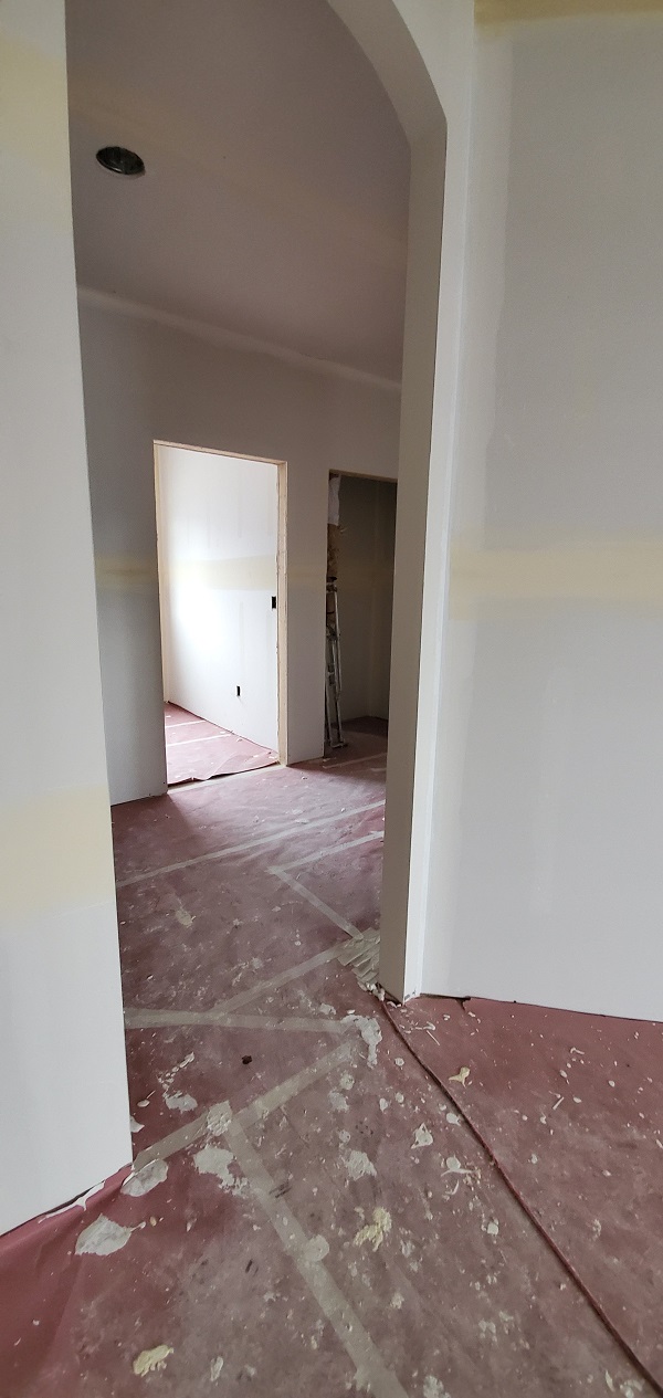 The next phase to quickly start was getting the drywall ready for the texture spray base. They have to tape, mud and sand all joints. LOTS of work to do but they are quick. Before we knew it there was texture on the walls.