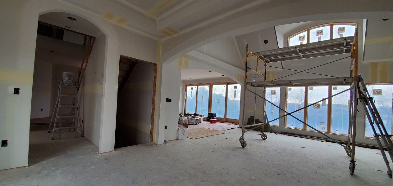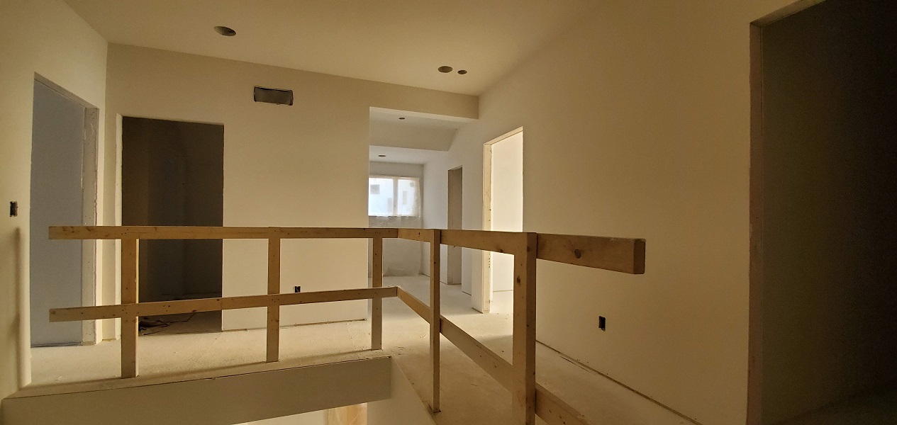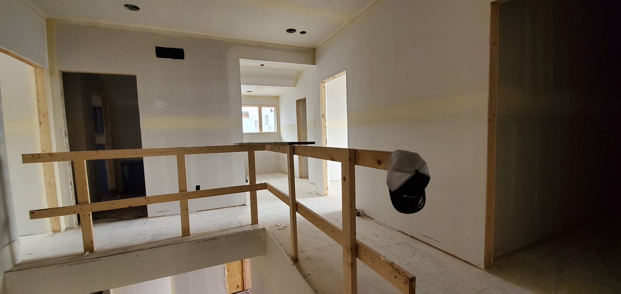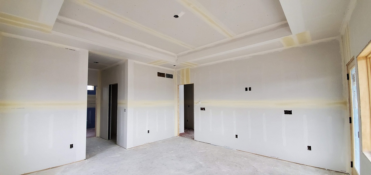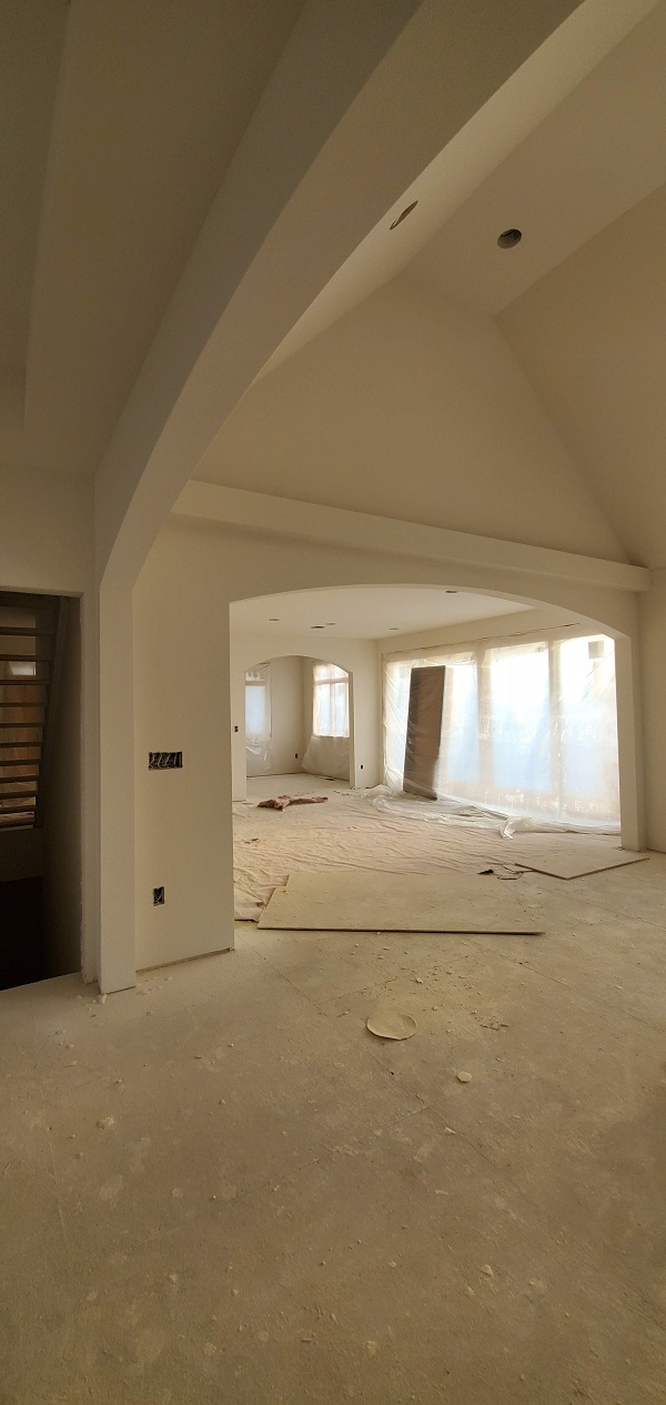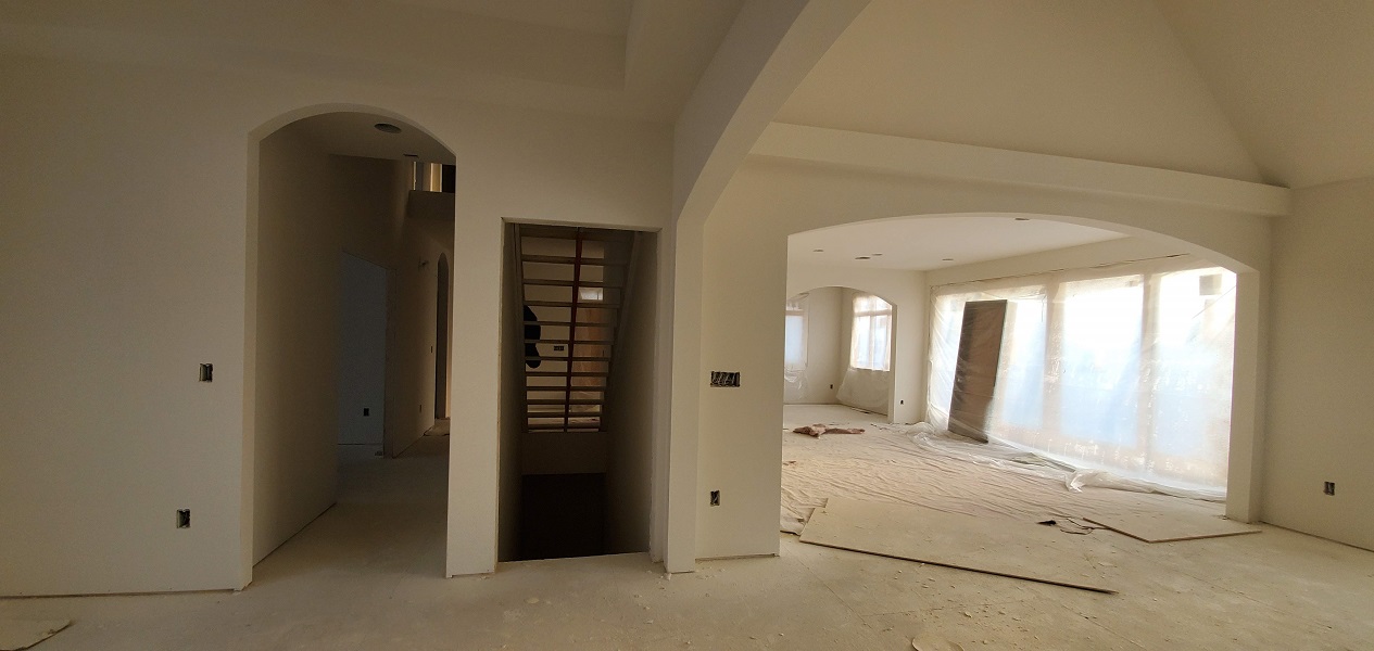 The next phase to quickly start was getting the drywall ready for the texture spray base. They have to tape, mud and sand all joints. LOTS of work to do but they are quick. Before we knew it there was texture on the walls.