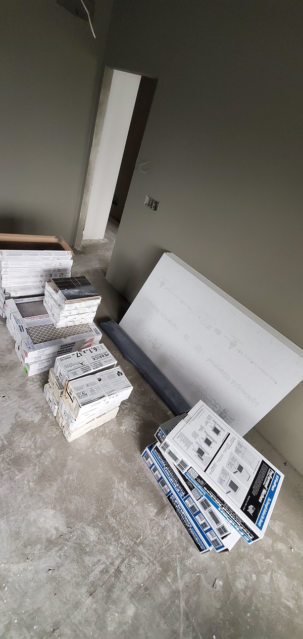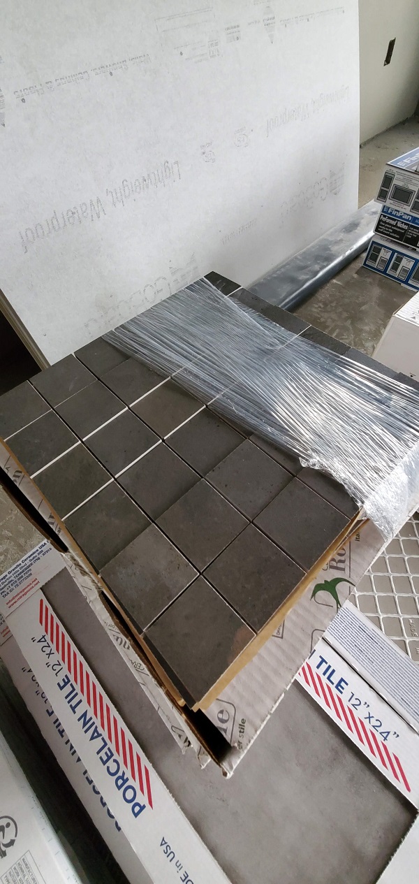 On Tuesday, May 19th the tile was delivered and patterns set up for the installer.