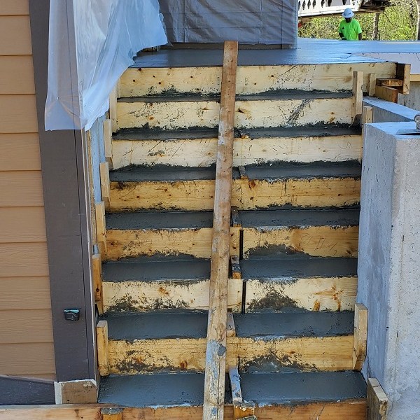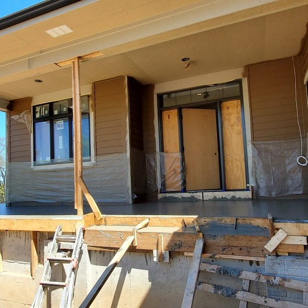 The first steps onto the patio were awesome! All those times hoisting ourselves up into the house and the jumps down were finally over. A nice clean easy walk-out to the patio was a dream.