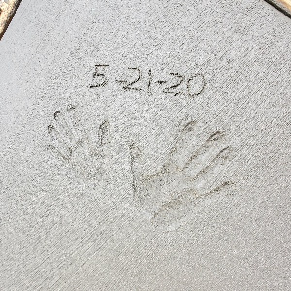 May 20th, there were some deliveries and the concrete for the patio got poured. That was awesome! There were clearly some hurtles for the Coello & Associates crew but they brought the boom back to be able to pour the patio as there would have been no other way of getting back there. The next challenge for them was to put the joints in and brush it out. They were up to the challenge and Roberto got the crew going and knocked it out. We were even able to put our hand prints in the patio. Check out Coello’s Facebook page as they posted aerial shots of the project on May 27, 2020.