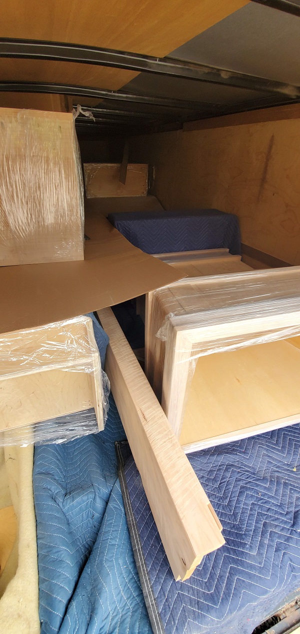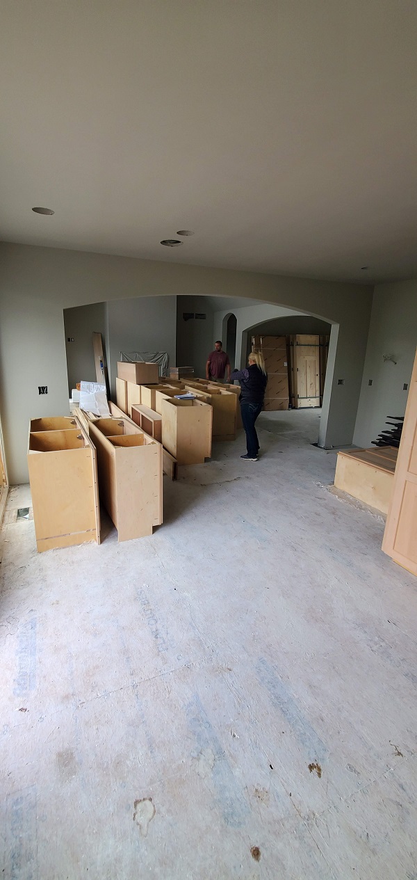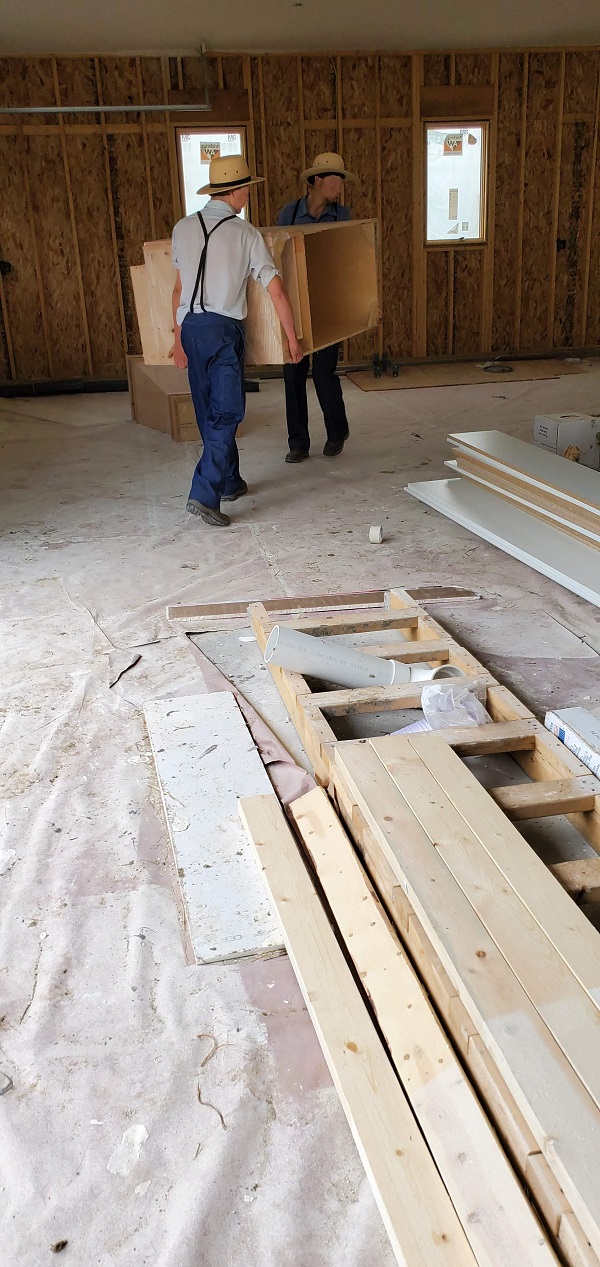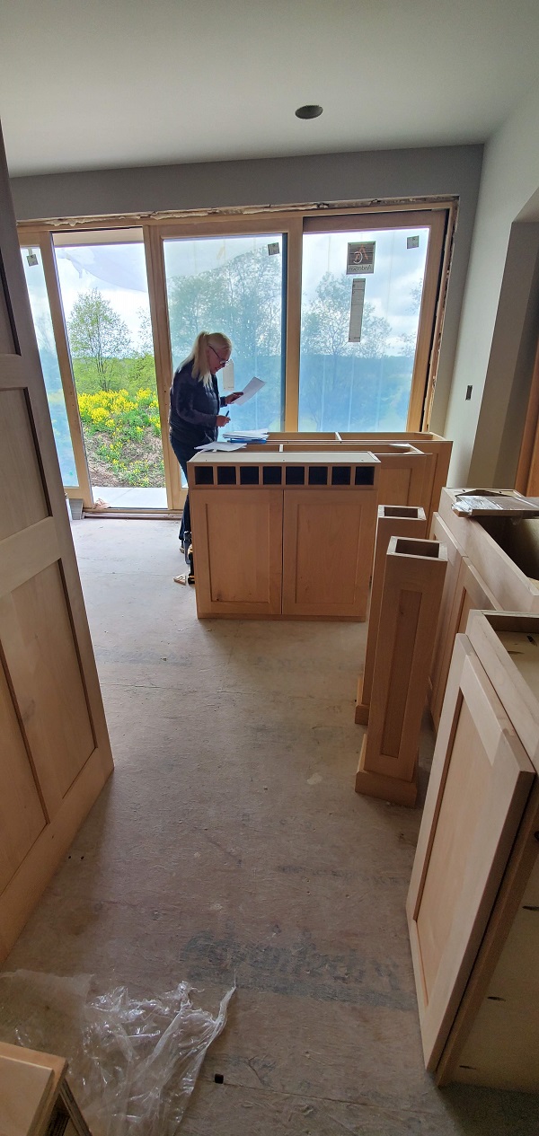 Friday, May 22 was a big day for a few things. We were able to walk on said patio and our cabinets also got delivered by Amish Custom Made, LLC. Stacey and Chris made the delivery along with two young Amish men. It was exciting to see one piece after another being brought in. The drawings we had looked at have come to life and what an amazing job Amish Custom Made did. Stacey was our go to person and she was AMAZING!! Loved talking with her over the phone to get exactly what we wanted. We are looking forward to going out there to see Jonas, the designer, and where our cabinets were built. The invite from Chris and Stacey was very much appreciated.
