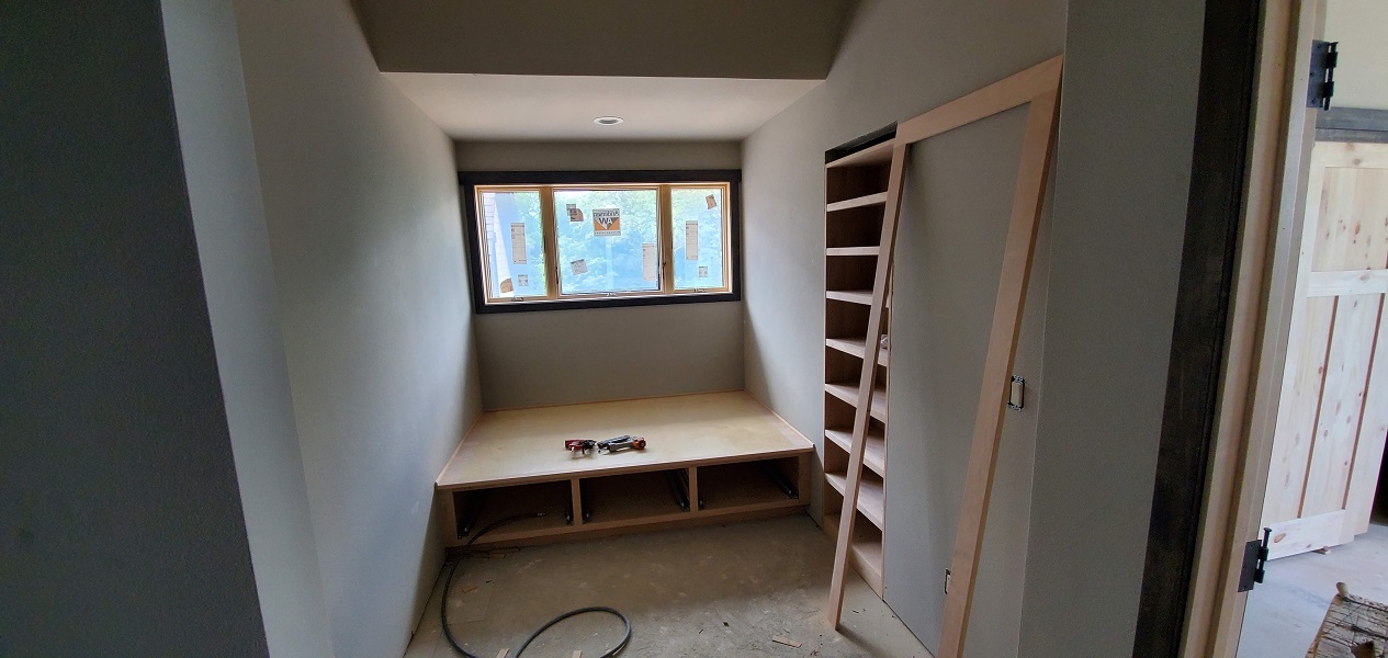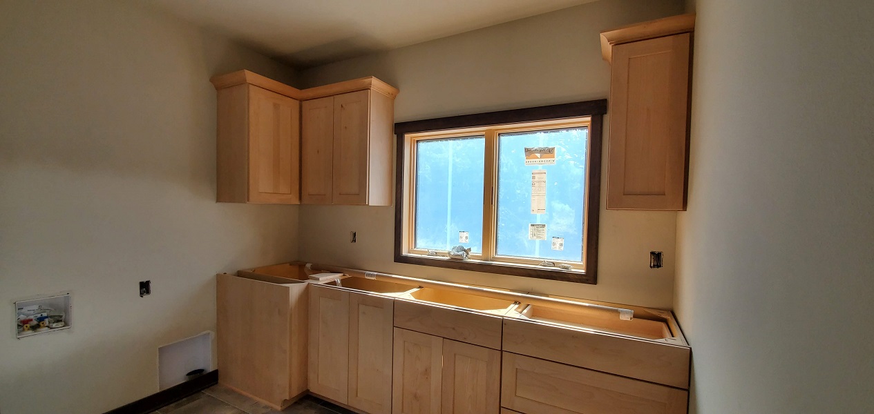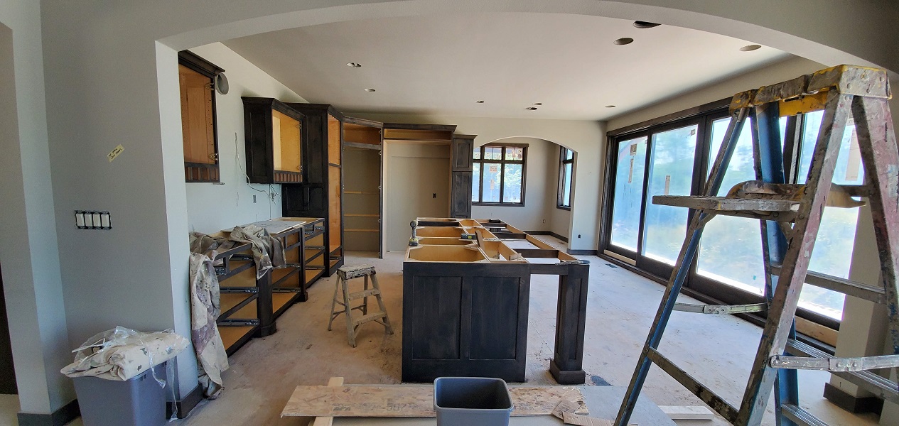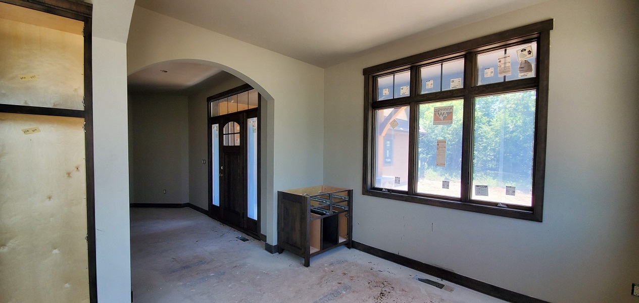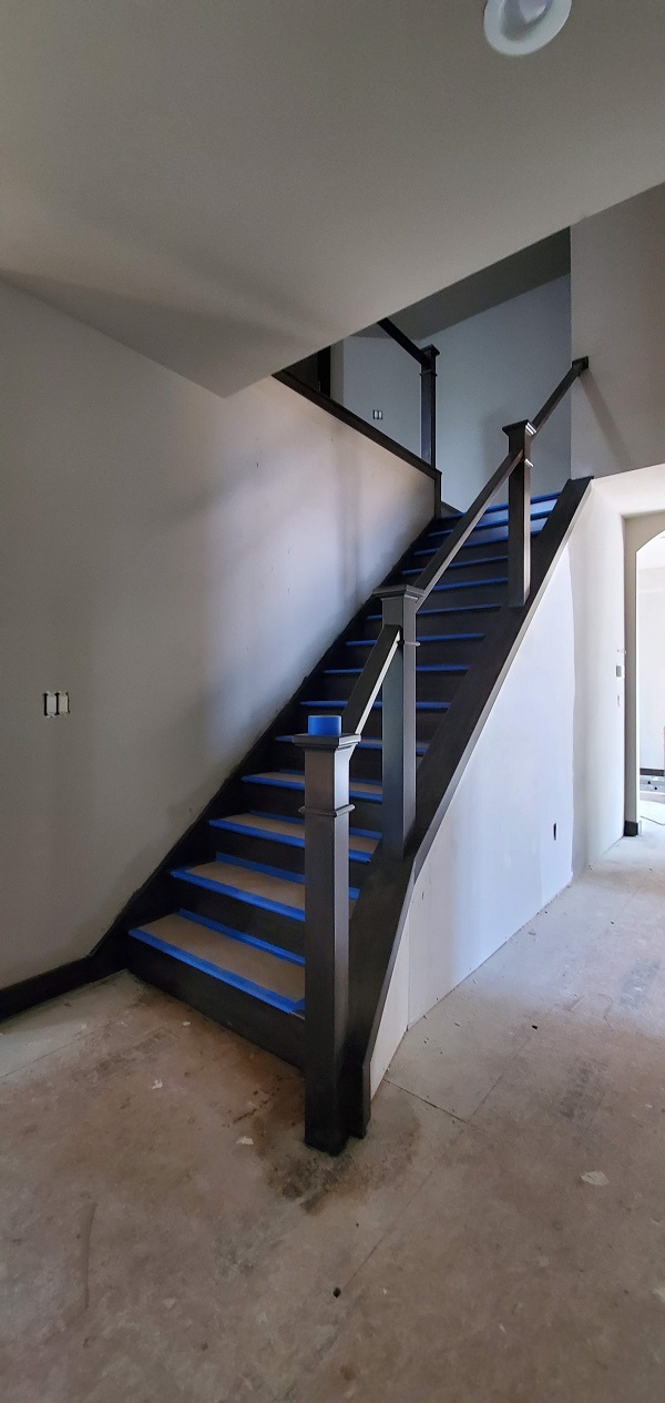 Staining…this is some stinky s@#%. When I came to visit the house at lunch and got out of my truck (that I park 1/2 ways up the driveway) I could smell the fumes from the stain. A guy came out and told me NOT to go in. Trust me, I won’t! Those poor guys and ALL the staining they were doing in there. They deserved at least lunch from the Tuttles!