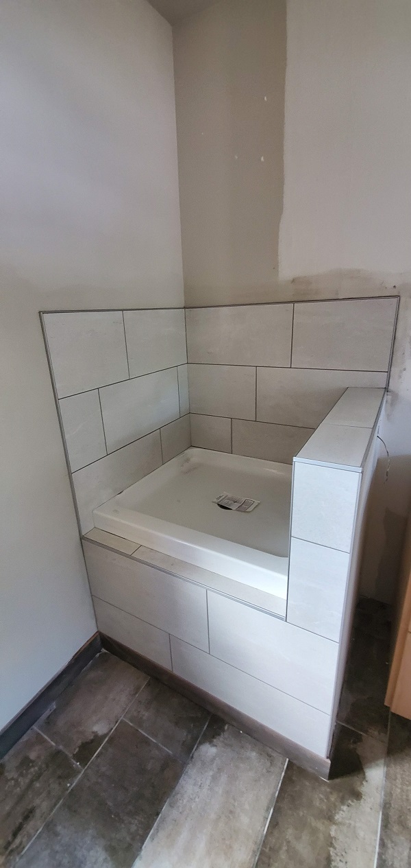 There is a lot still happening each week at Three Oaks Cottage. Carpentry, staining and tiling to name a few. We were supposed to have the fireplace stone installed but luckily I went to the house to capture pictures of the install as the stone was completely incorrect. Nothing like walking into a room full of hard working men with 1/3 of the work done only to find out that they have to take it all down. I felt so bad telling them that it was incorrect. If it was a nice alternative I would have gone with the flow and said ‘go ahead, keep going.’ But it wasn’t even close. It was pretty but not in our house. So the investigation was now in play and would soon find out all is well and we get our stone. The only hitch is that we have to keep the ball rolling on other things including the flooring which is not the best thing to have in when you have heavy scaffolding and stones to be installed. Our first real hiccup considering that we have already waited one month for the wrong stone. That set us back a bit but Troy will keep things moving along.
