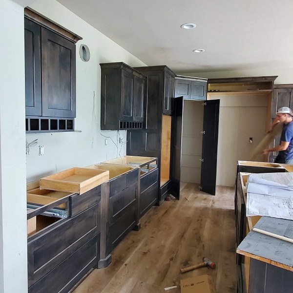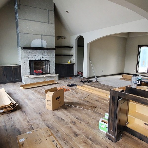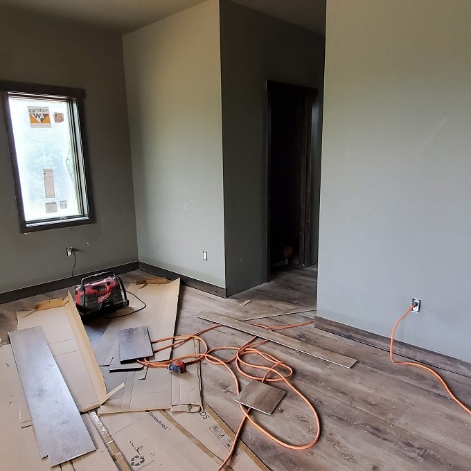 Flooring by Wicks Wood Flooring. We went with Cali Luxury Vinyl Planks and boy are we glad we did. Durable and waterproof/resistant. Great for having pets! Everyone is raving about it at the house and if they didn’t know better, looked like hard wood.